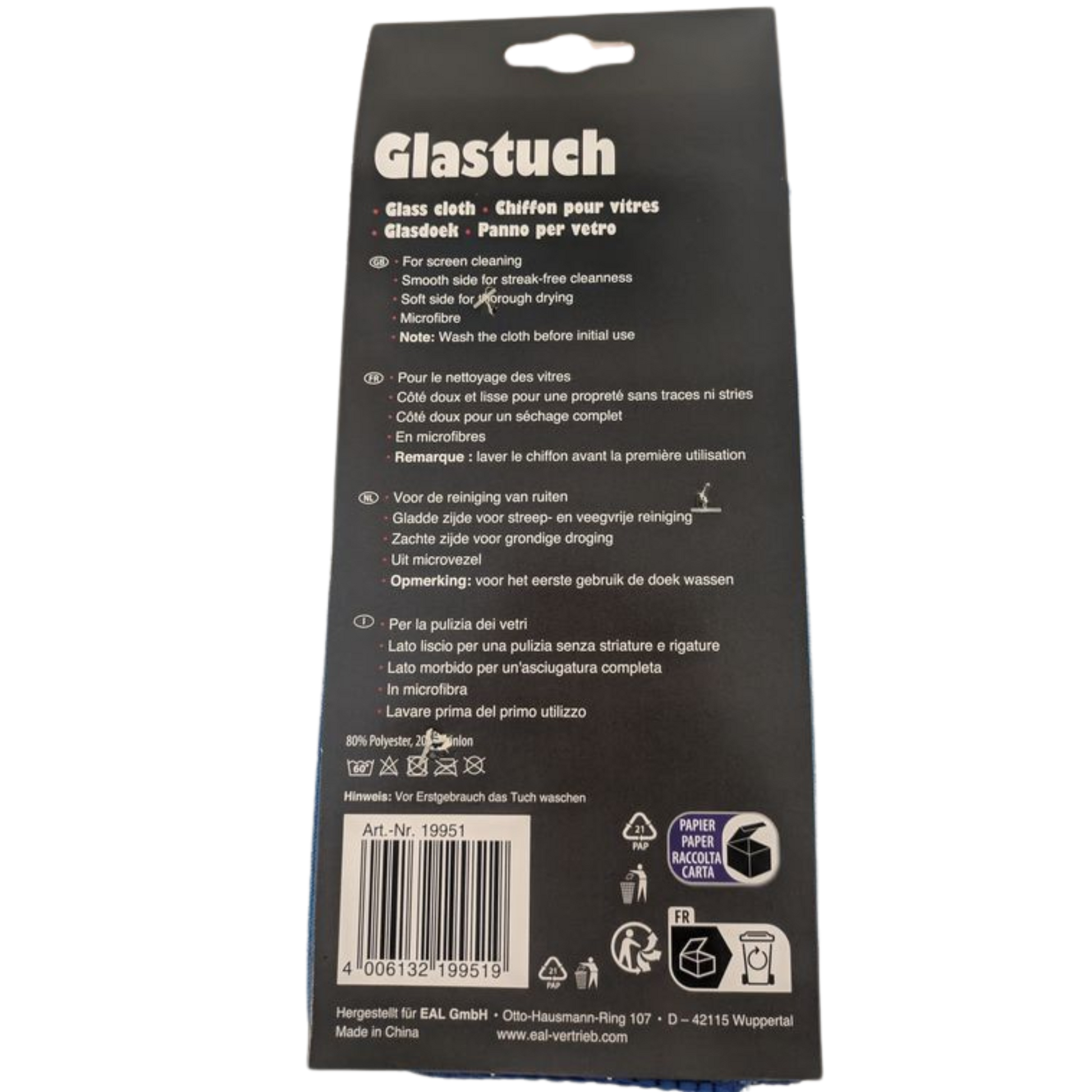Das APA Glastuch wurde speziell für die effektive Reinigung von Glas- und Spiegelflächen entwickelt. Mit seiner glatten Seite sorgt es für streifen- und schlierenfreie Ergebnisse, während die weiche Seite eine gründliche Trocknung ermöglicht. Dank der hochwertigen Materialzusammensetzung ist das Tuch besonders langlebig und kann bei bis zu 60 °C gewaschen werden.